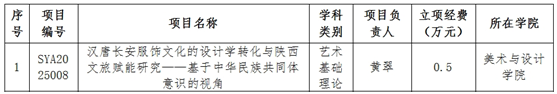 近日,陕西省艺术科学规划领导小组办公室公布了2025年陕西省艺术科学规划项目立项名单,我院黄翠老师项目获批,资助经费0.5万元。