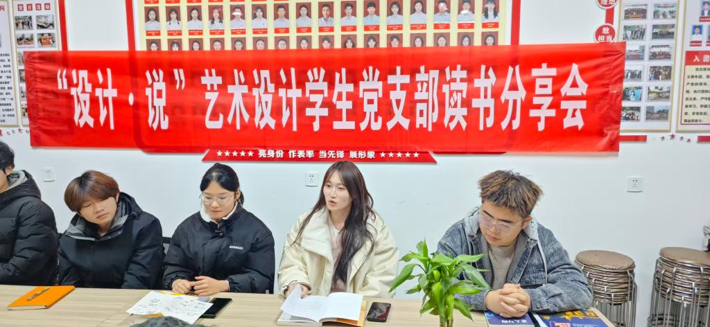 2025年11月17日晚,艺术设计学生党支部在“一站式”学生社区举办第九期“设计·说”读书分享会。会议由支部书记单福顺主持,学院党委副书记刘继文到会指导。