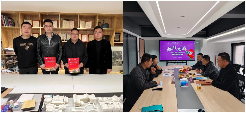 在陕西伍道工程设计有限公司,刘继文一行参观了公司办公区域、设计工作室与项目成果展厅,了解公司业务布局、行业优势及发展规划。在座谈交流中,刘继文介绍了学院学科专业、师资力量及2026届毕业生情况,指出此行旨在精准对接行业需求,搭建校企合作长效机制,为毕业生开拓优质岗位,为企业输送高素质人才。企业负责人结合公司发展计划,提出建筑设计、景观规划等领域用人需求,双方就提升学生实践能力、实现学业与职业衔接交换意见。
