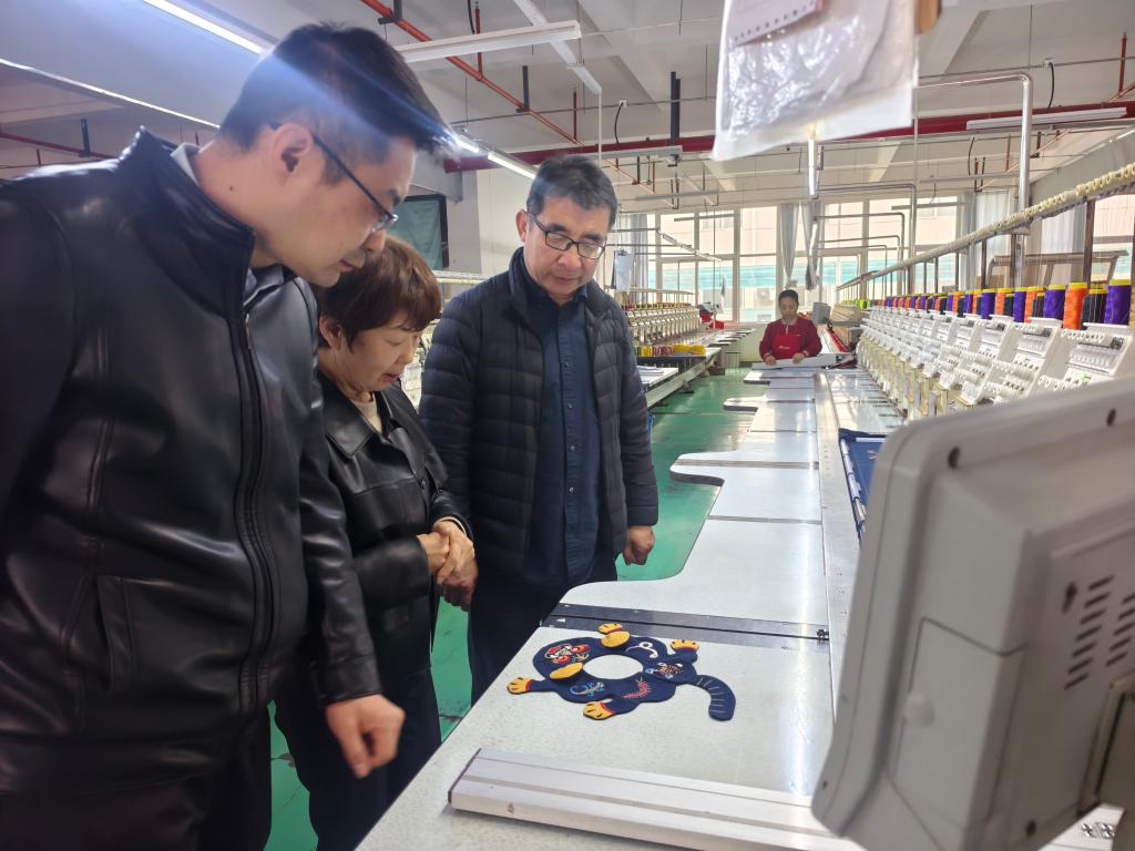 一行人参观了非遗产品设计及制作过程。座谈中,李强院长介绍了学院专业建设、人才培养及学科优势,希望依托企业非遗刺绣资源,在项目研发、实践教学、实习就业等方面开展深度合作。企业负责人介绍了发展规划、技艺传承与人才需求,表达了与学院协同创新的强烈意愿。